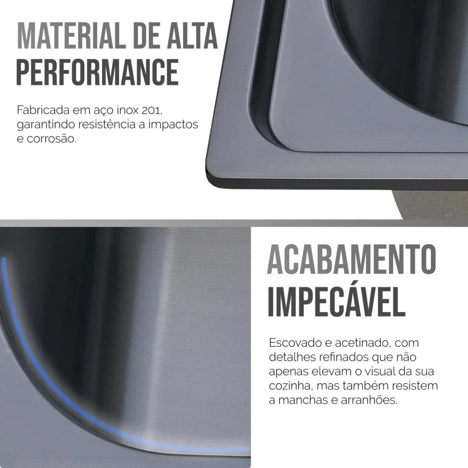 Praticidade e conforto: A cuba oferece um espaço amplo e profundo, ideal para lavar utensílios grandes e realizar diversas tarefas na cozinha de forma confortável e eficiente.