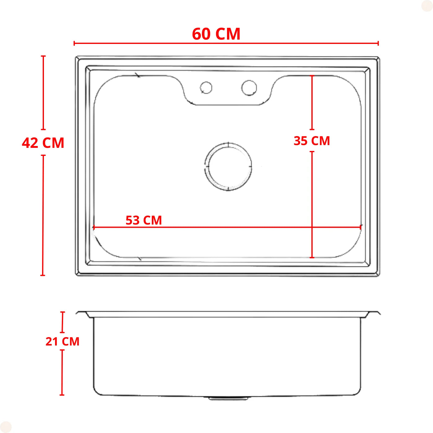Furo da torneira: 3,5 cm de diâmetro