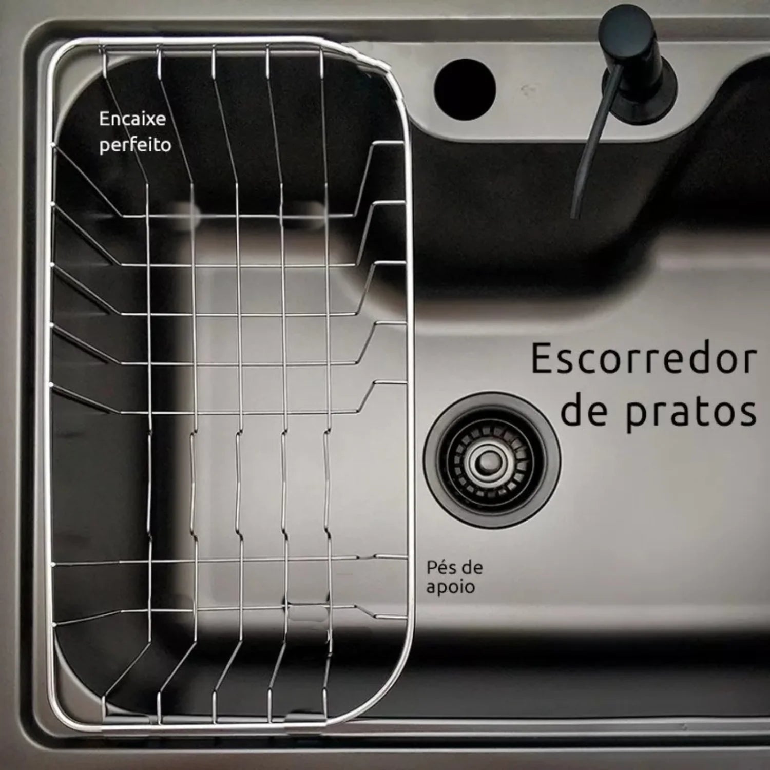 Conforto extra: o local específico para o dispenser de detergente ajuda a manter sua pia organizada e funcional. O sistema antirruído, presente no fundo da cuba, minimiza o ruído do fluxo de água, tornando o uso ainda mais agradável.
