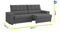 Dimensões do Produto: Largura: 206cm, Altura: 98cm, Profundidade fechada: 92cm, Profundidade aberta: 140cm